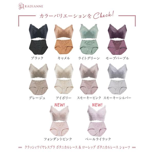 ノンワイヤーブラ 胸を小さく見せるブラ クラッシィワイヤレスブラ ボタニカルレース ブラジャー ショーツセットラディアンヌ