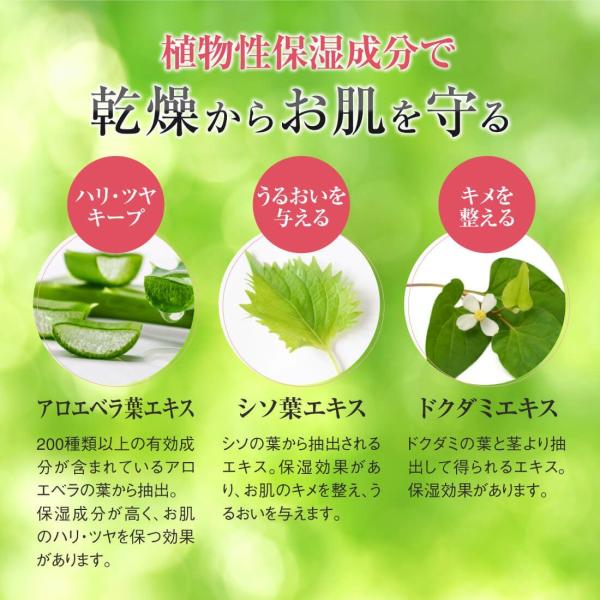 ◆保湿成分:アロエベラ葉エキス、シソ葉エキス、ドクダミエキス