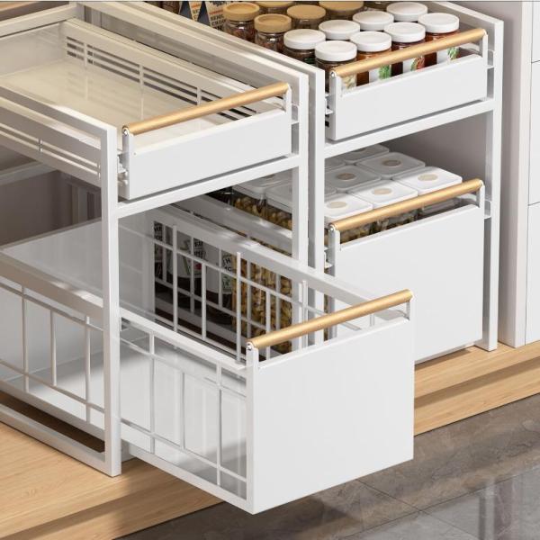 只今底値!シンク下スライドラック 2段 シンク下 スライドラック アイデア 食器 鍋 可動棚 棚 引き出し キッチンラック シンク上 キッチン下収納 スリム
