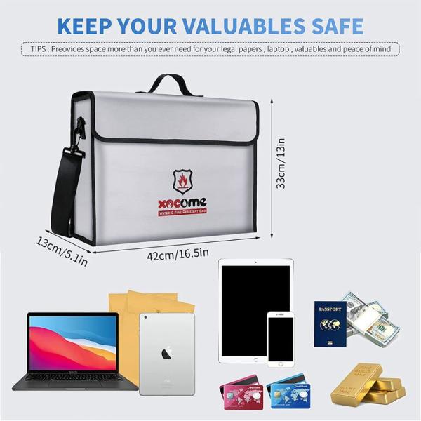 耐火バッグ 書類保管ケース 防火 防爆 防水 防災 耐熱2093℃ 現金収納 金庫耐火バッグ 手提げ 家庭用 A4サイズ対応 大容量 ジッパ