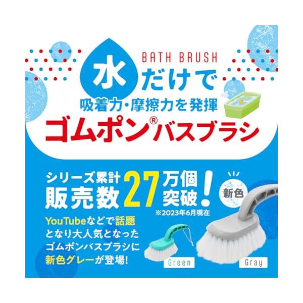 【コパ公式】ゴムポン バスブラシ ハンドタイプ 水だけで汚れが落ちる お風呂 掃除 湯垢 水垢落とし ゴムブラシ 日本製 (1, グリーン)