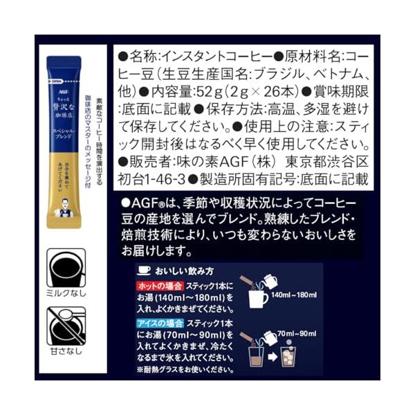 AGF ちょっと贅沢な珈琲店 スティックブラック スペシャルブレンド 26本 【 スティックコーヒー 】