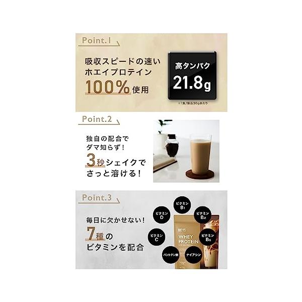 REYS レイズ ホエイ プロテイン 山澤 礼明 監修 1kg 国内製造 ビタミン7種配合 WPCプロテイン ぷろていん ホエイプロテイン (カフェオレ風味)