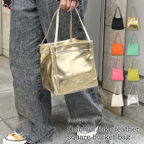 ハンドバッグ トートバッグ レディース 軽い 小さめ バケツ型 キューブバッグ マチ広 手持ち フェイクレザー 革 シンプル おしゃれ 自立