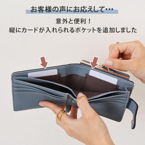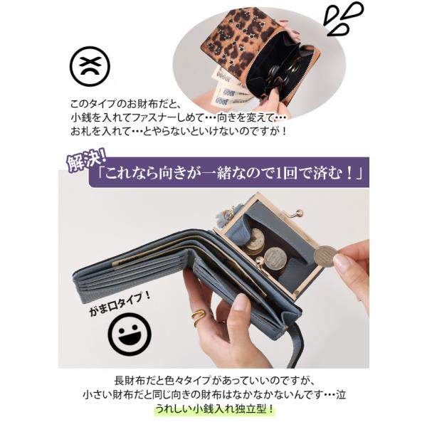 財布 レディース 二つ折り がま口 小さめ コンパクト 使いやすい 小銭入れ 札入れ カード入れ ウォレット 向き 同じ 仕切り ベルト付き 時短