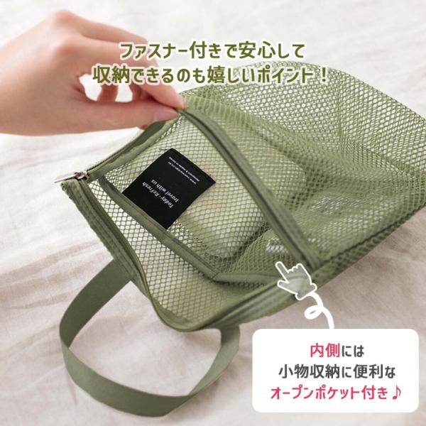 ファスナー付きで安心して収納できるのも嬉しいポイント。