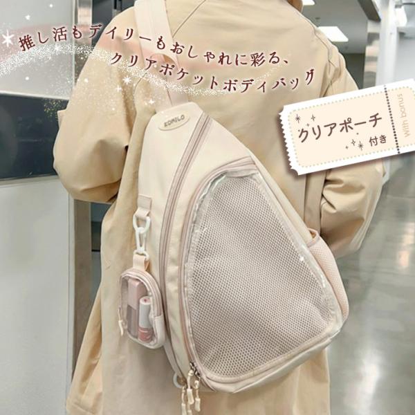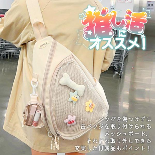 痛バッグ 痛バ ボディバッグ ショルダーバッグ メッシュボード付き 缶バッジ クリアバッグ 推し活 レディース メンズ 軽い 斜めがけ グッズ
