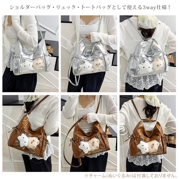 痛バッグ ショルダーバッグ ミニリュック ぬいぐるみ ぬいバッグ 缶バッジ クリア 透明 レディース 軽い 推し活 3way トートバッグ