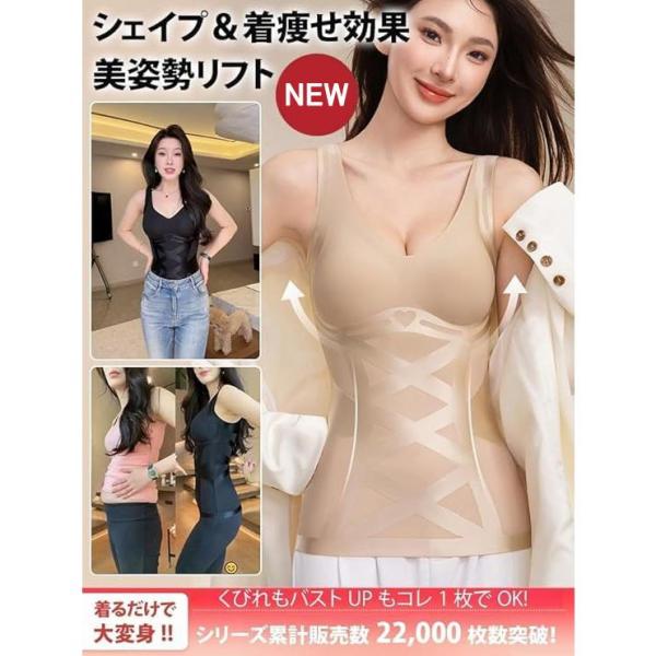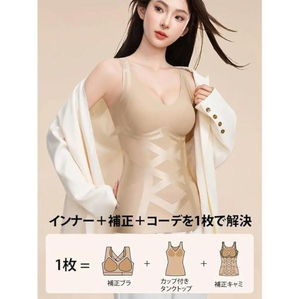 ブラカップ無しで好きなブラと組み合わせ可能?:ご自身のお気に入りのブラジャーと合わせて、バストラインを自由に調整。着るだけで、バストアップ・お腹シェイプ・くびれメイクをサポートします。