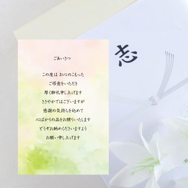・葬儀後のご挨拶、法要後の返礼品に添えるカードとして幅広くご利用いただけます。