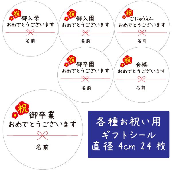 【名入れ】お祝い おめでとう ラッピング シール ハンドメイド 丸い メッセージシール 24枚■ m24a0060-65■合格 卒業 卒園 入学 入園