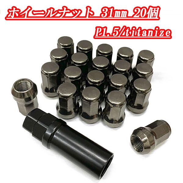 ホイールナット ロックナット 4穴 5穴 20個 スチール ホイール ナット 袋ナット 外7角形 31mm M12xP1.5 送料無料 ガンメタル