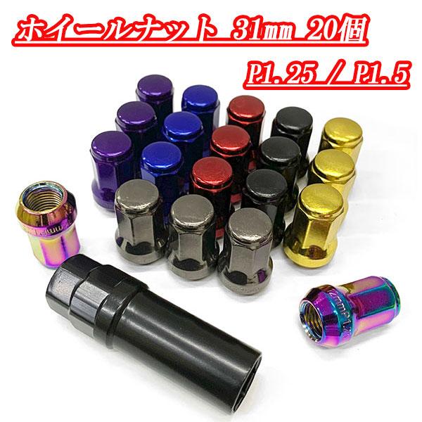 ホイールナット ロックナット 4穴 5穴 20個 スチール ホイール ナット 袋ナット 外7角形 31mm M12xP1.25/P1.5 ポイント消化 送料無料