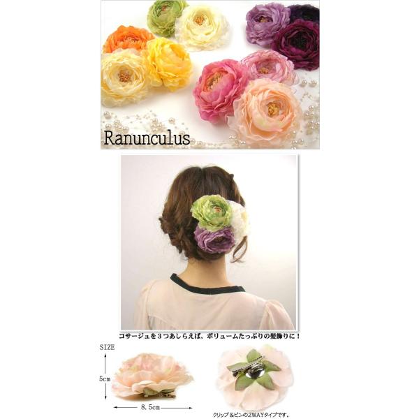 髪飾り 成人式 結婚式 浴衣 和装 ラナンキュラス コサージュ クリップ ヘアアクセサリー ヘッドドレス