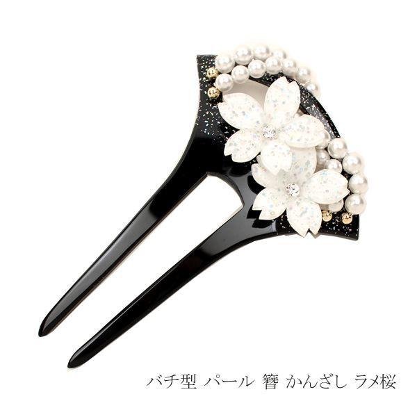 髪飾り 留袖 結婚式 成人式 振袖 和装 バチ型 パール 簪 かんざし ラメ桜 黒 袴 卒業式 着物 入学式 ヘアアクセサリー ウェディング
