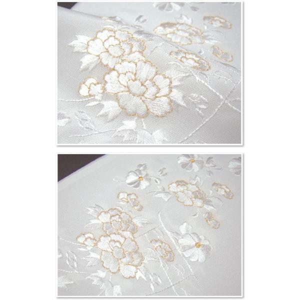 3点までメール便OK 刺繍半衿 半襟 白/金 几帳に菊と牡丹 結婚式 成人式 フォーマル 留袖用 黒留袖 色留袖