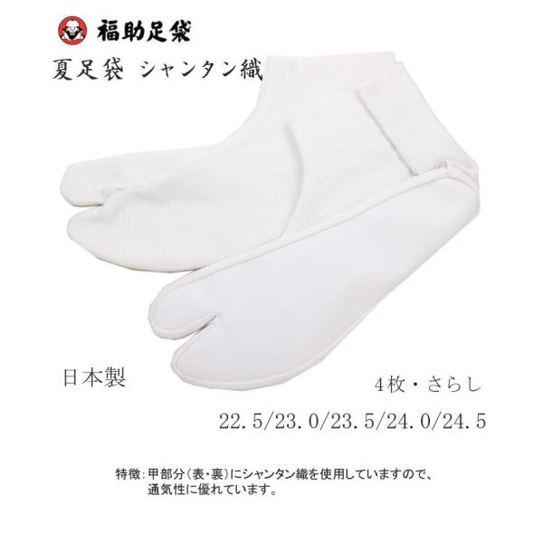 足袋 福助足袋 夏足袋 シャンタン織 4枚コハゼ さらし 22.5〜24.5cm 着物 浴衣 和装 弓道 女性用 レディース 夏用 涼しい