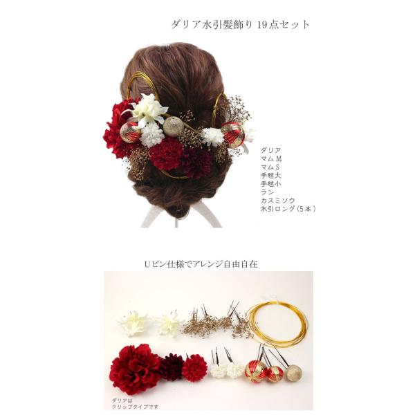 髪飾り 成人式 結婚式 和装 ダリア水引 19点セット 赤 ヘアアクセサリー ヘッドドレス