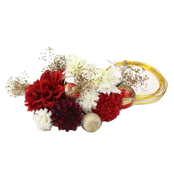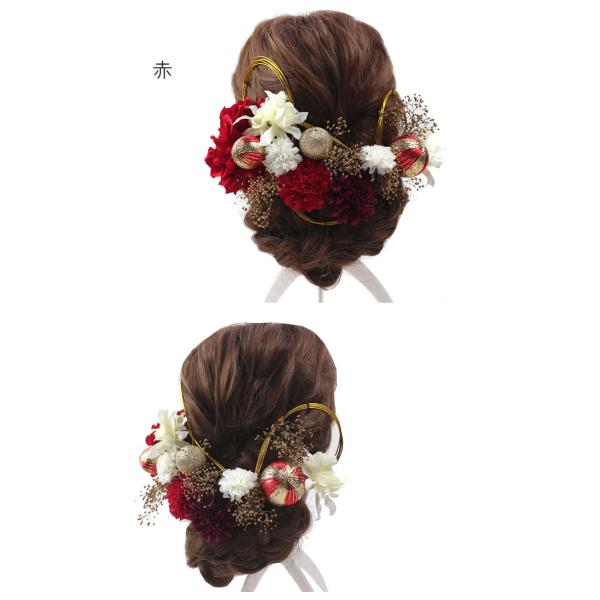 生花のような繊細なプリザーブドフラワーに造花を組み合わせた華やかな髪飾りの19点セットです。それぞれにUピンが付いて自在にヘアアレンジをお楽しみいただけます。インパクトある水引をデザインするようにヘアーに飾り付け華やかさをプラス。