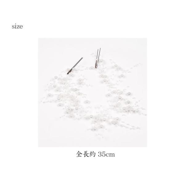 パールの髪飾りを髪に飾るだけでパッと華やかに仕上がります。コサージュだけでは何か物足りないときにもってこいのアイテムです。ひとつ付けでも華やかですが、ふたつ付けでより一層華やかさが増します。片方にアクセントとして飾っても、カチューシャのように飾っても可愛らしく仕上がります。パールの長さが気になるようでしたら、Uピンで押さえてお好みの長さに。