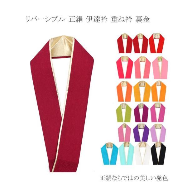 リバーシブル 正絹 伊達衿 重ね衿 裏金 結婚式 成人式 フォーマル 振袖用 袴 はかま 赤 ピンク 紫 緑 オレンジ 黒 白