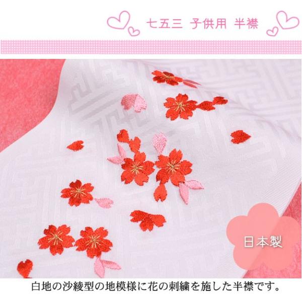 3点までメール便OK 日本製 子供用 刺繍半衿 半襟 白 七五三 3歳 7歳 こども kids 半襟