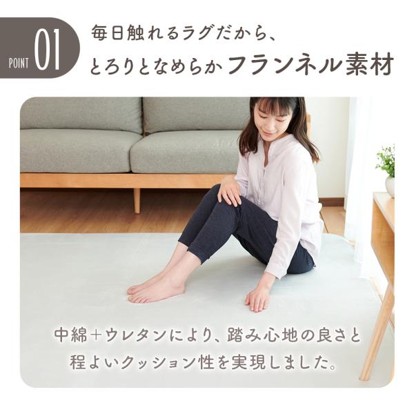・表地は、ふんわり やわらかなフランネルを使用。遊び毛が少なく、ペットにも安心です。