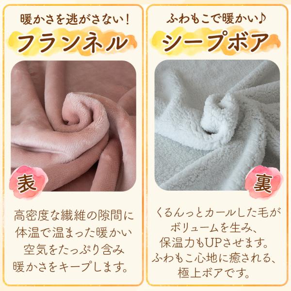 ・表は肌触りの良いふわふわなとろけるタッチのフランネル生地、裏は気持ちいいもこもこシープボア付きのボリュームタイプのひざ掛け毛布、寒さ対策、節電対策、にピッタリです。男性 女性問わずお使いいただけます。