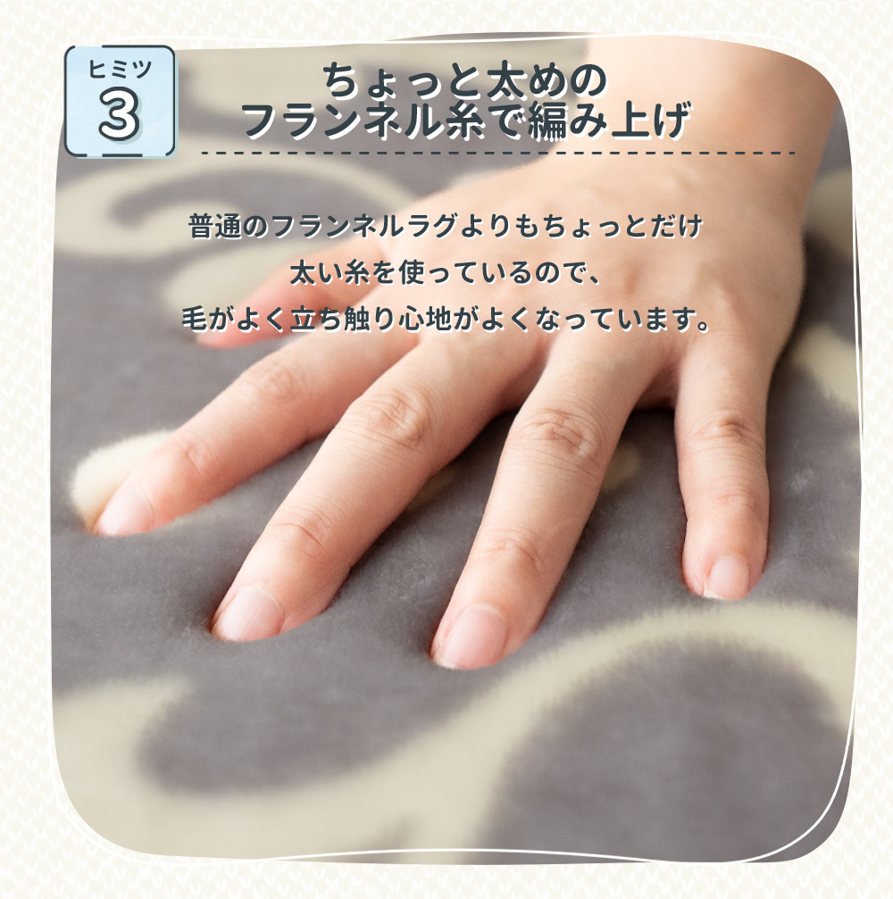 中綿には帝人フィルケア綿を使用し、その抗菌防臭効果によってラグを清潔に保ちます。