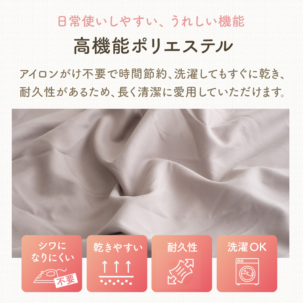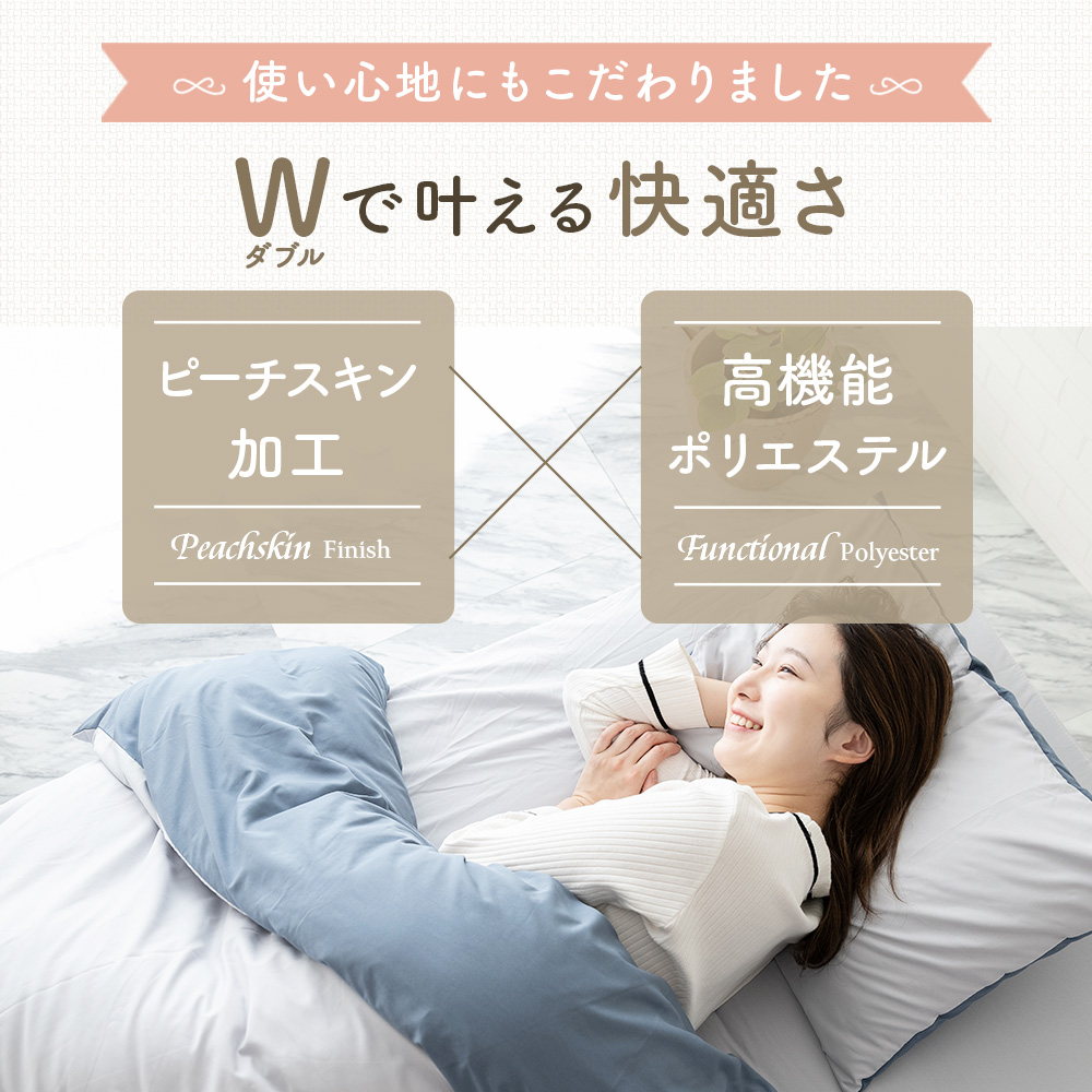 ・ピーチスキン加工により、生地が非常に滑らかでなめらかな質感に仕上がり、触れたときの肌触りが非常に柔らかく、快適な寝心地です。