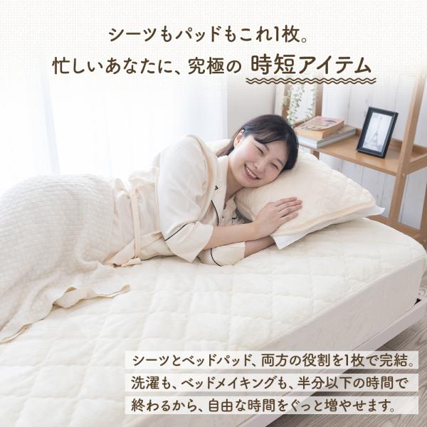 ・ベッドパッドとボックスシーツが一体型になっているため、セットが簡単。さらに、一枚まるごと洗濯できるので手間がかかりません。