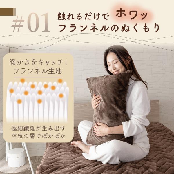 ・極細繊維で織り上げたフランネル素材が、ふんわりと空気を含みながら熱を逃さずキープ。