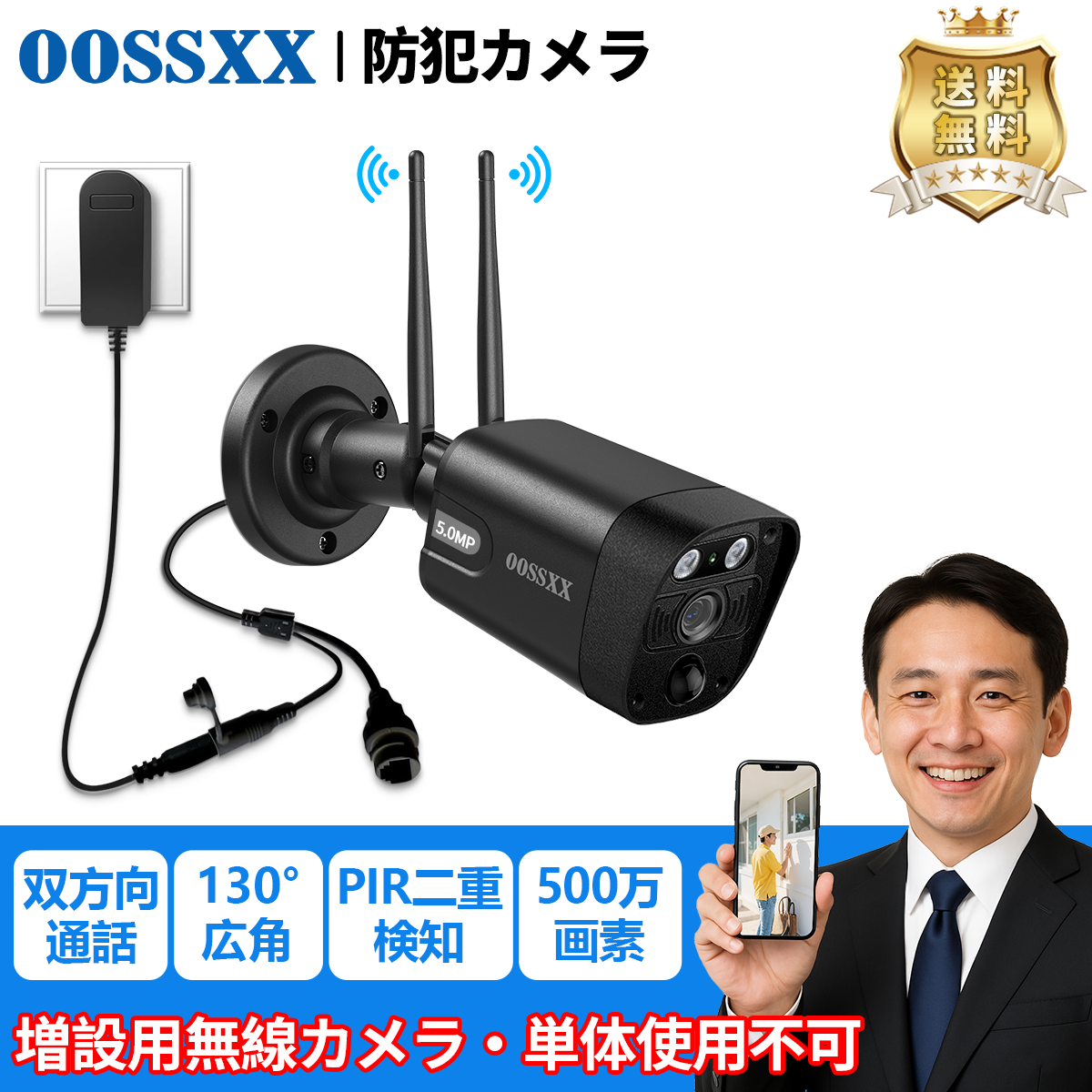OOSSXX 防犯カメラ ワイヤレス 屋外 2k 300万画素 増設用 防犯カメラ 監視カメラ ホーム WiFi 監視弾丸屋外カメラ 無線カメラ