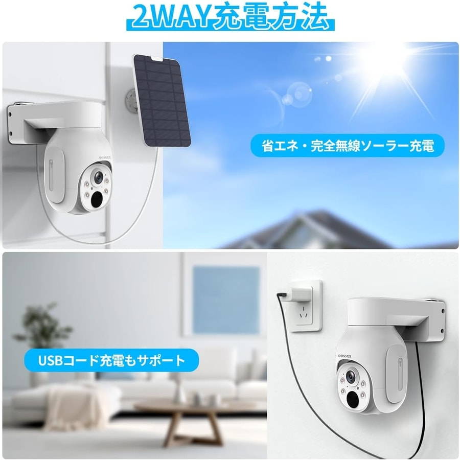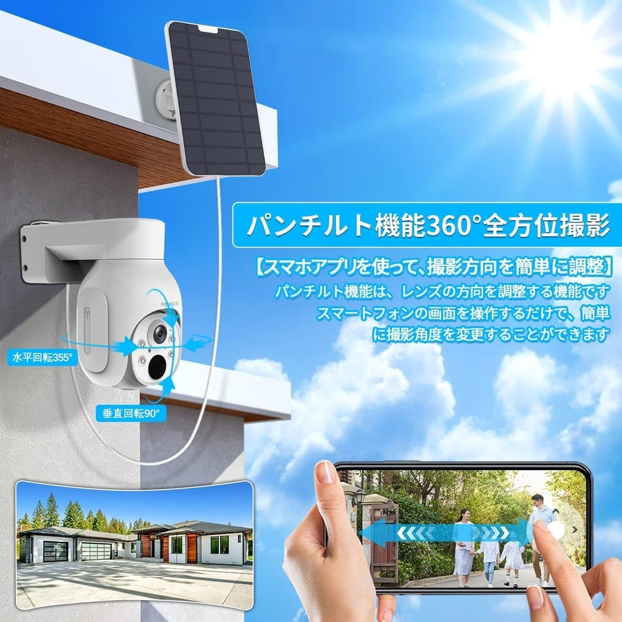 検索用:OOSSXX 防犯カメラ ソーラー給電 400万画素 ワイヤレスカメラ PTZ制御 完全無線カメラ wifi ワイヤレス 家庭用 暗視 HDD 屋外 人体検知 AI スマホ バッテリー充電 ソーラー 無線カメラ 動体検知 玄関 工事不要 無線 スマホ 屋内 監視カメラ