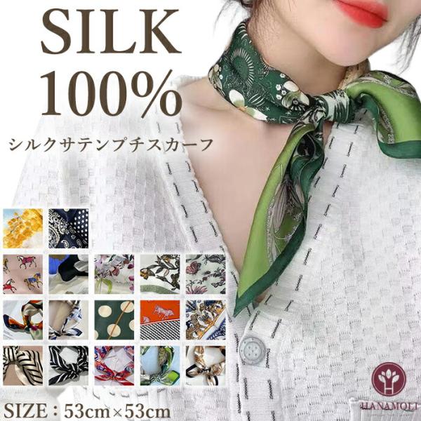 サテンプチスカーフ HANAMOLI シルク100% レディース 絹 紫外線対策 シルク小物 小判 サテンリボン シルクサテンプチスカーフ メール便5点まで 7535