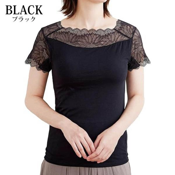 フィットブラ付きスクエアネックレースインナーフレンチ袖 脇汗 汗取りインナー 汗染み防止 メール便1点まで 90635 【N】