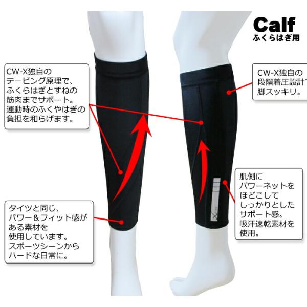 CW-X独自のテーピング原理で、ふくらはぎとすねの筋肉をサポートします。