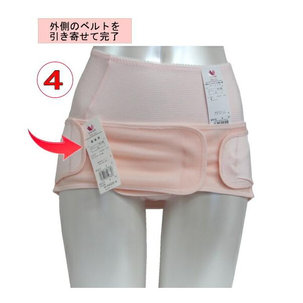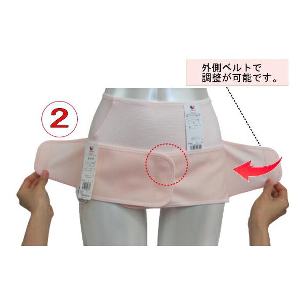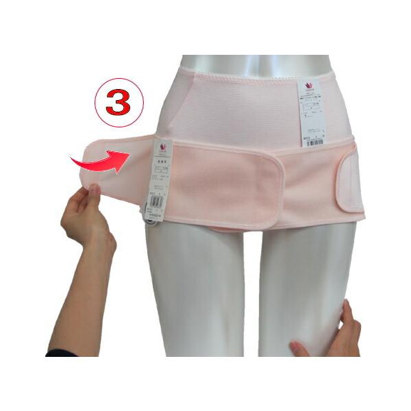 その際、まだデリケートな状態のウエストや腹部はおさえつけず、骨盤を後下方から支えてサポートすることが大切です。