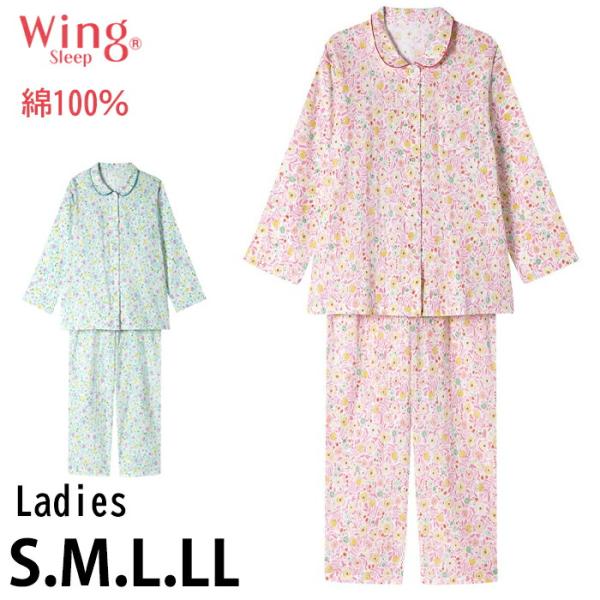 ウイング Wing 綿100%二重ガーゼ レディース ワコール Wacoal パジャマ 前開き 通気性 吸汗速乾性 長袖 春秋 敬老の日 ギフト EP7048 【S】