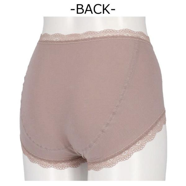 マチ裾部分から後ろ裾にかけて、独自のパターン構造を用いることでおしりを立体的にすっぽりおおうから、動いても裾がズレ上がりにくい