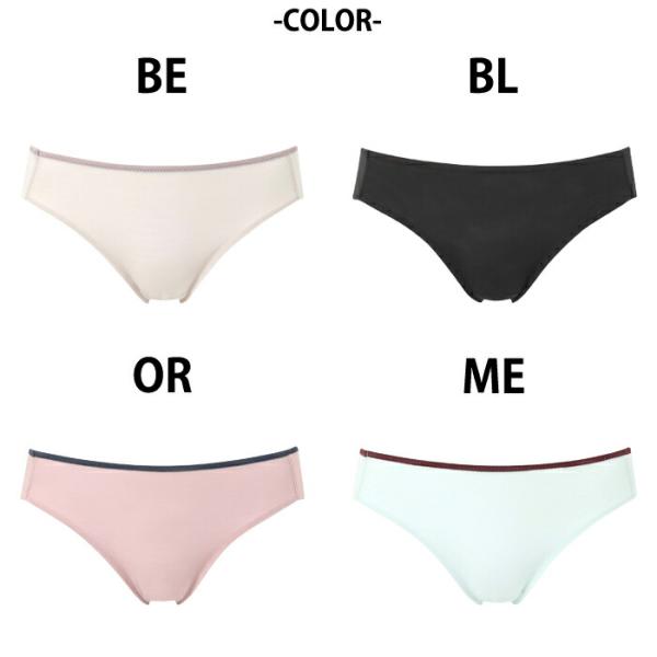 「重力ケアブラ ノンワイヤー(BXB114)」とペアコーデが楽しめるショーツ。本体には軽やかな素材を使用し、ここちよく着用できます。バックの裾をヘム仕様にすることで、アウターにひびきにくくボトムもきれいに着こなせるデザイン。シンプルなので単品としても使いやすいアイテムです。