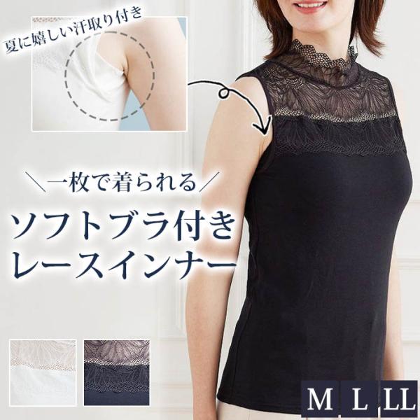 フィットブラ付きハイネックレースインナーノースリーブ(M・L・LL) 汗取り カップ付きインナー メール便1点まで 90637 【N】
