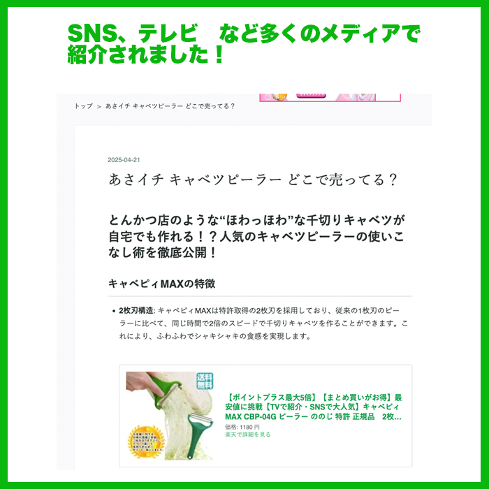 【TVで紹介されました】【ポイントプラス5倍】 キャベピィMAX CBP-04G 【ののじ年間ランキング1位】 ピーラー スライサー ののじ 2枚刃 千切り キャベツ