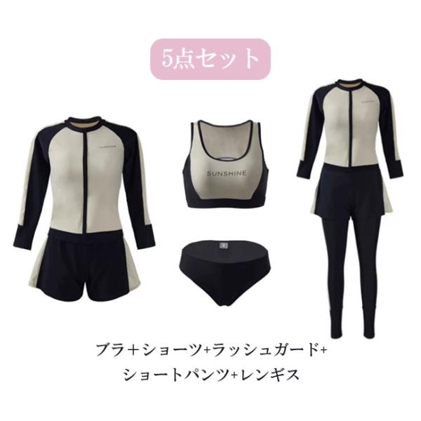 5点セット:ブラ+ショーツ+ラッシュガード+ショートパンツ+レンギス