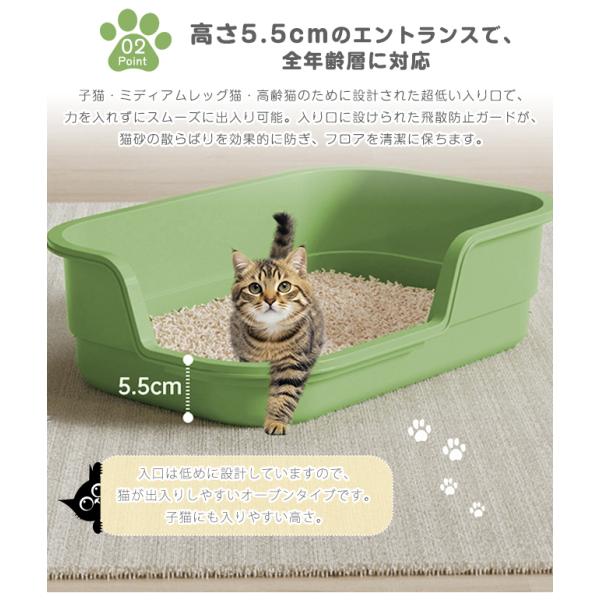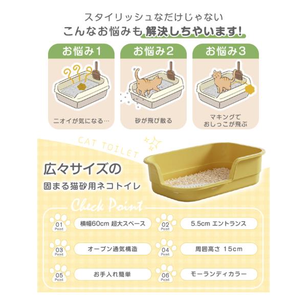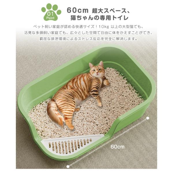 猫用トイレ 大型 におい対策 猫 ねこ ネコ スコップ付き 飛び散り防止 バッフル 大きめ シンプル お手入れ簡単 こねこ 子猫 高齢猫 猫砂 オープンタイプ 爆買