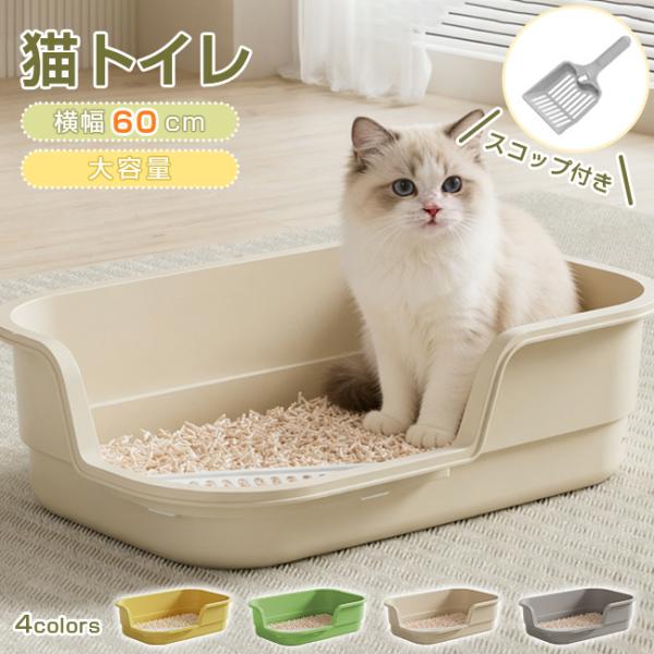猫用トイレ 大型 におい対策 猫 ねこ ネコ スコップ付き 飛び散り防止 バッフル 大きめ シンプル お手入れ簡単 こねこ 子猫 高齢猫 猫砂 オープンタイプ 爆買