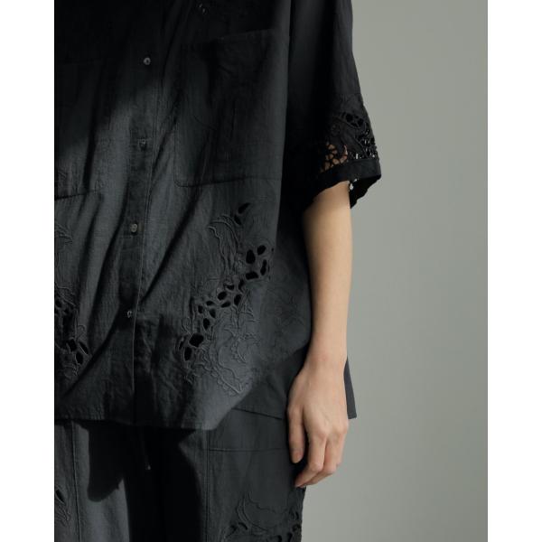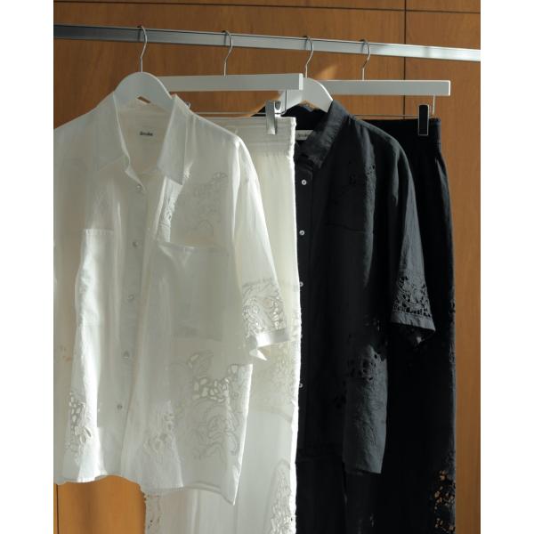 インドのカットワークレースを使い、刺繍と組み合わせたシャツ。古着のような雰囲気のある1枚に仕上がりました。同じ生地を使用したパンツと合わせるのもおすすめです。