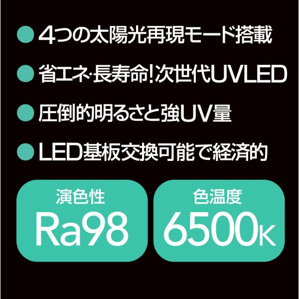 ゼンスイ バータイプソラリウム Bar Type SOLARIUM UVLED 400は、植物育成用に設計された高性能UV LED照明です。紫外線を効果的に活用し、植物の成長と開花を促進します。バータイプの設計により、設置が簡単で、広範囲に光を届けることができます。エネルギー効率が高く、長寿命なため経済的です。