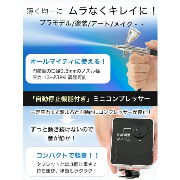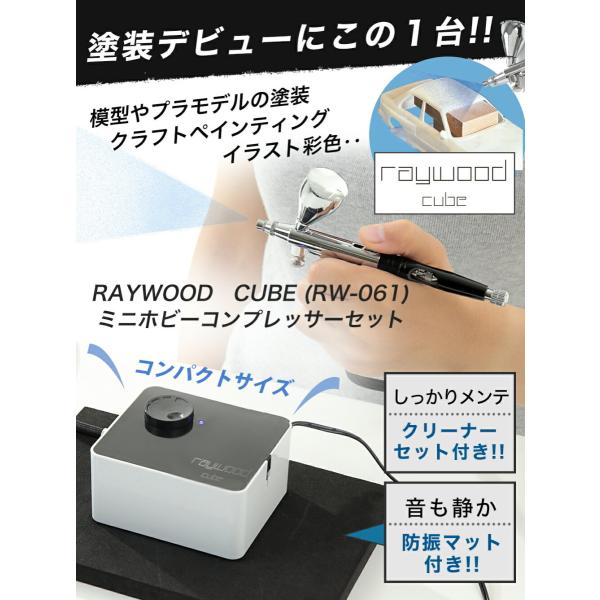 エアブラシ ミニコンプレッサー セット RAYWOOD エアブラシcube RW-061 ホビーコンプレッサー セット 防振マット クリーナーセット 付きUSB 口径0.3mm