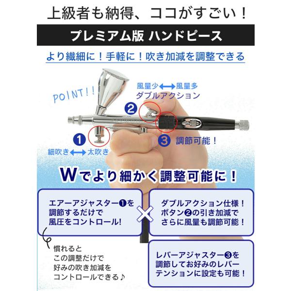 エアブラシ ハンドピース カップ分離型 PROFIX Tech Liner ハンドピース(TH-B02) 0.3mm口径標準 口径変更可能 0.2mm〜0.5mm対応 ダブルアジャスター